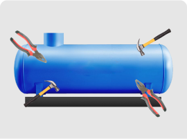 Работа включает и сам процесс помещения бутана в резервуар, а также расчеты граммов и кубометров. На этапе подготовки осуществляется осмотр местности, монтаж и подключение баллона.